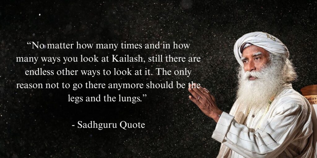 “No matter how many times and in how many ways you look at Kailash, still there are endless other ways to look at it. The only reason not to go there anymore should be the legs and the lungs.” – Sadhguru
