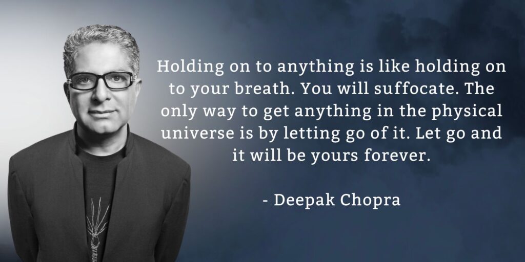 #2 Holding on to anything is like holding on to your breath. You will suffocate. The only way to get anything in the physical universe is by letting go of it. Let go and it will be yours forever. – Deepak Chopra