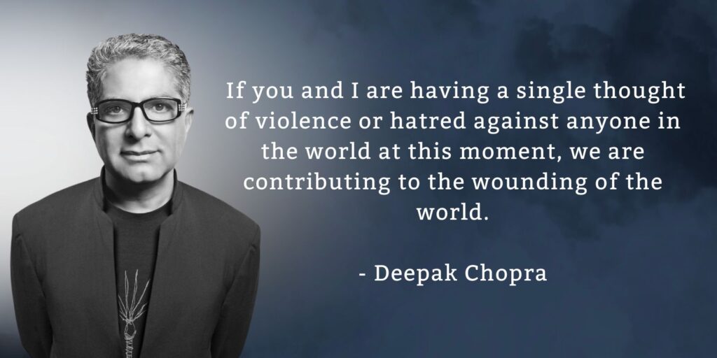 #3 If you and I are having a single thought of violence or hatred against anyone in the world at this moment, we are contributing to the wounding of the world.  – Deepak Chopra