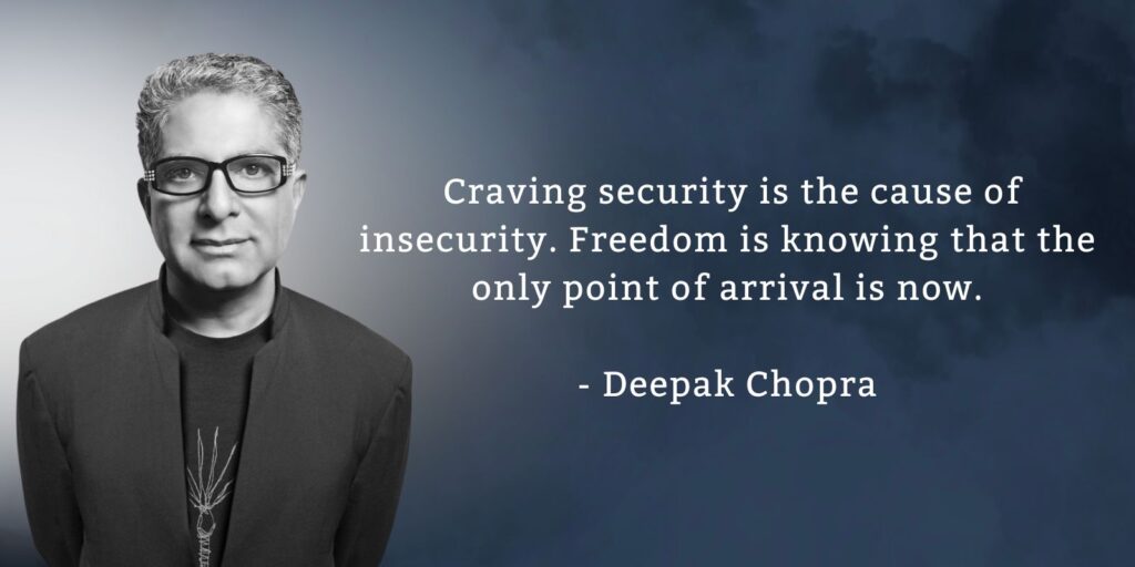 #7 Craving security is the cause of insecurity. Freedom is knowing that the only point of arrival is now. – Deepak Chopra