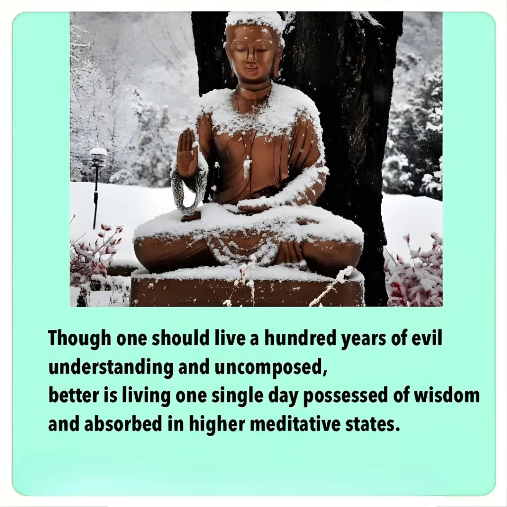 Though one should live a hundred years without wisdom and control, yet better, indeed, is a single day’s life of one who is wise and meditative. – Buddha