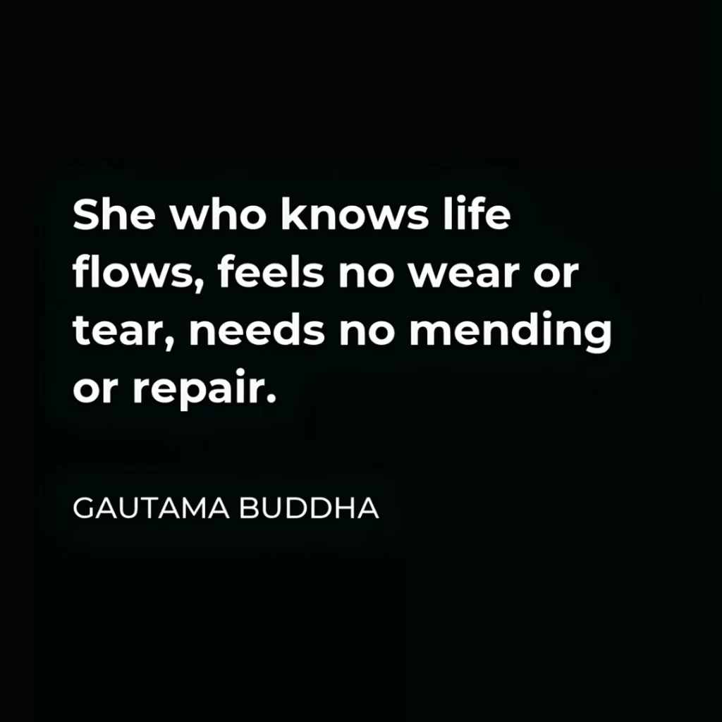 She who knows life flows, feels no wear or tear, needs no mending or repair. – Buddha