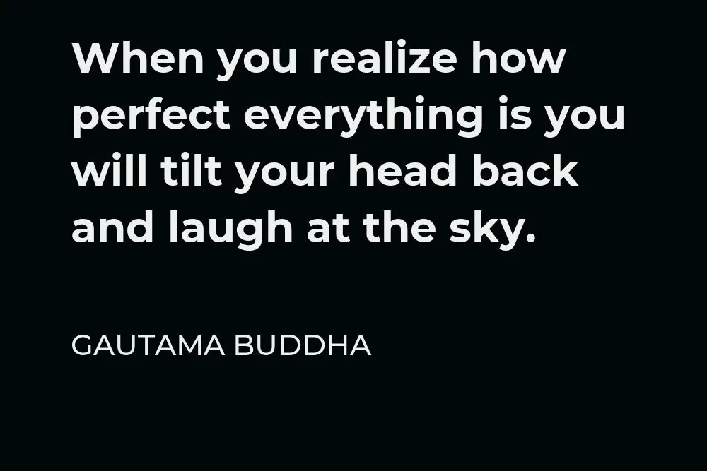 When you realize how perfect everything is you will tilt your head back and laugh at the sky. – Buddha