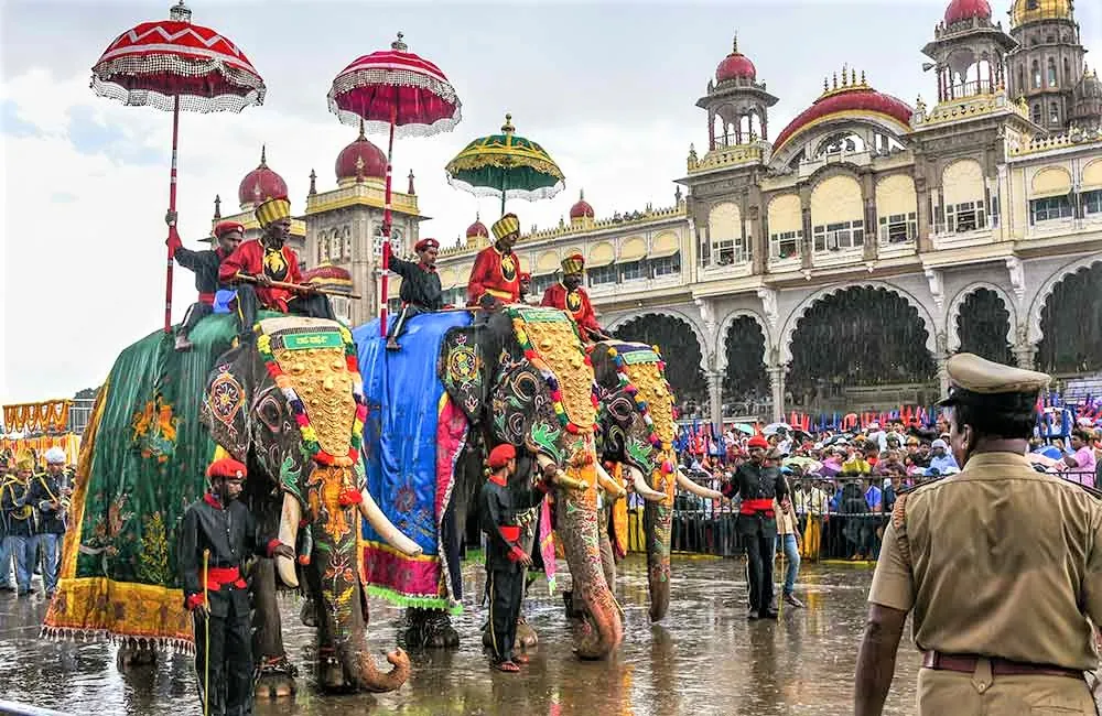 People of Karnataka have their own way of celebrating Navaratri. Dussehra celebration in this state includes Yakshagana, a dance-drama based on epic tales which continues through the night. In Mysuru, the royal sword is worshipped on the day of Mahanavami, and is taken on a procession with elephants and horses. Ayudh puja is also performed on this day, wherein military people worship their weapons and others worship their tools, and also pray to Goddesses Saraswati, Parvati and Lakshmi. On Dussehra, an image of Goddess Chamundeshwari is placed on a golden saddle on the back of an elephant and taken on a procession which also includes, camels, horses and dance groups. During Navaratri, homes are decorated with art dolls called Gombe and a folk dance called Gaarudi Gombe featuring these dolls, is performed, mainly in the procession of Mysore Dasara.