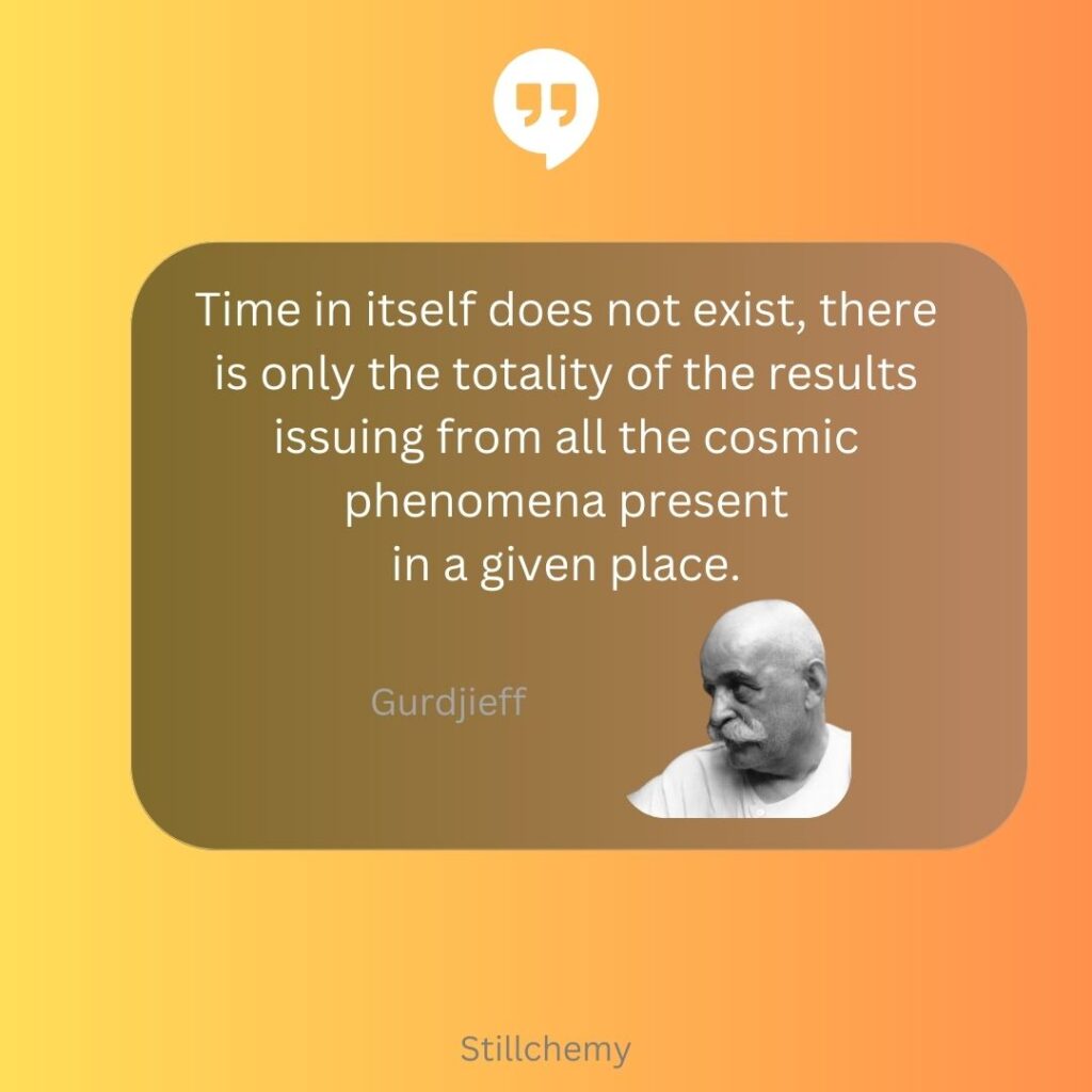 Time in itself does not exist, there is only the totality of the results issuing from all the cosmic phenomena present in a given place. – Gurdjieff