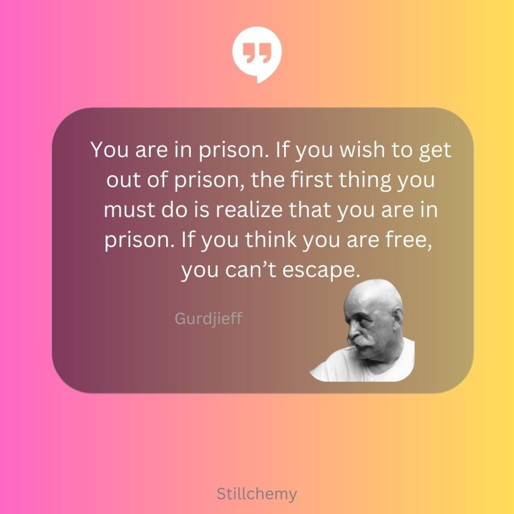 You are in prison. If you wish to get out of prison, the first thing you must do is realize that you are in prison. If you think you are free, you can’t escape. – Gurdjieff