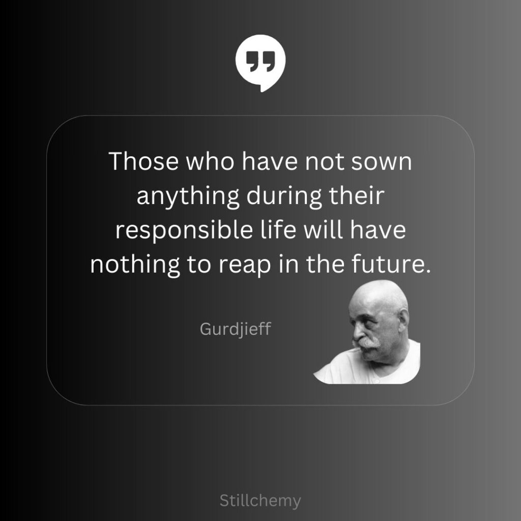 Those who have not sown anything during their responsible life will have nothing to reap in the future. – Gurdjieff