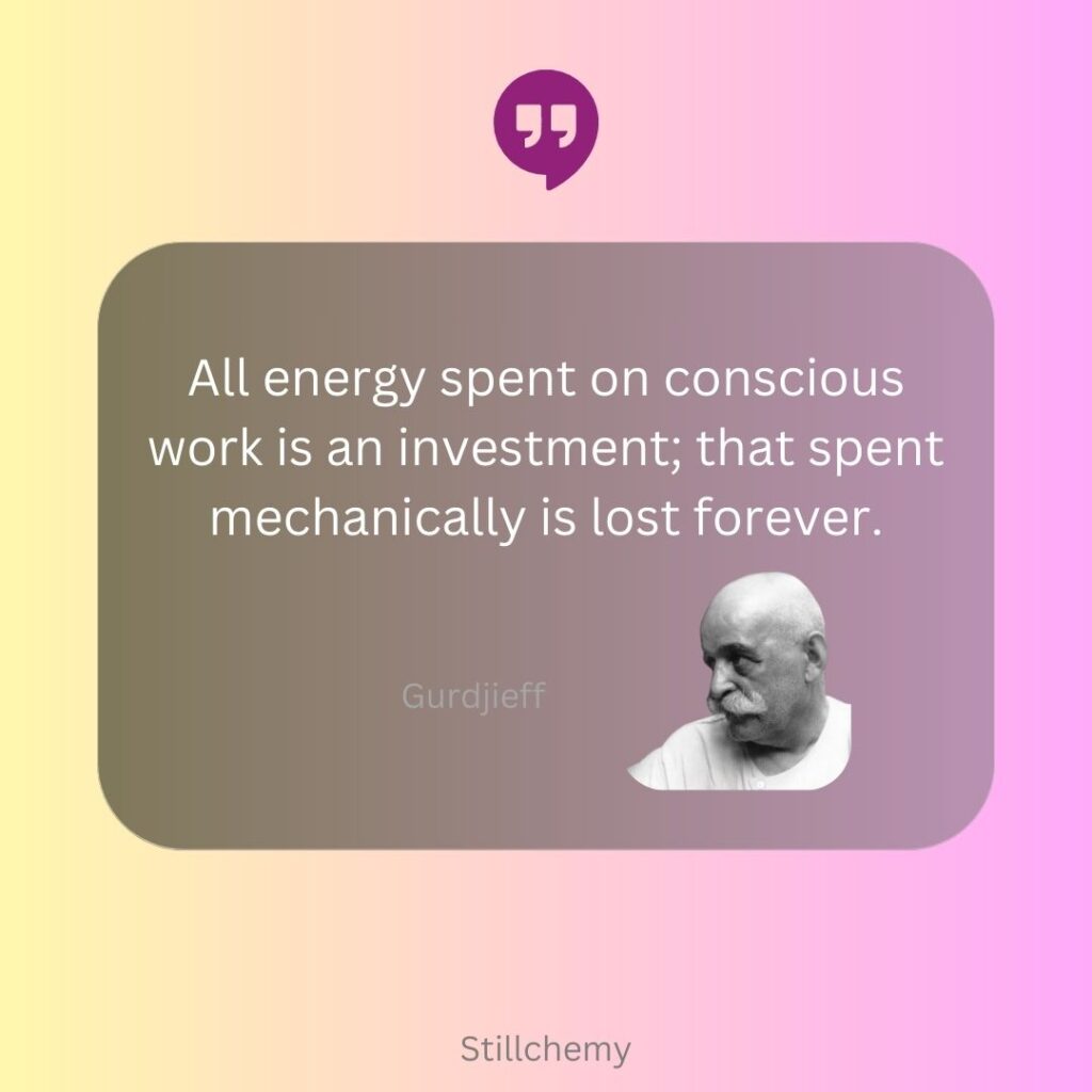 All energy spent on conscious work is an investment; that spent mechanically is lost forever. – Gurdjieff
