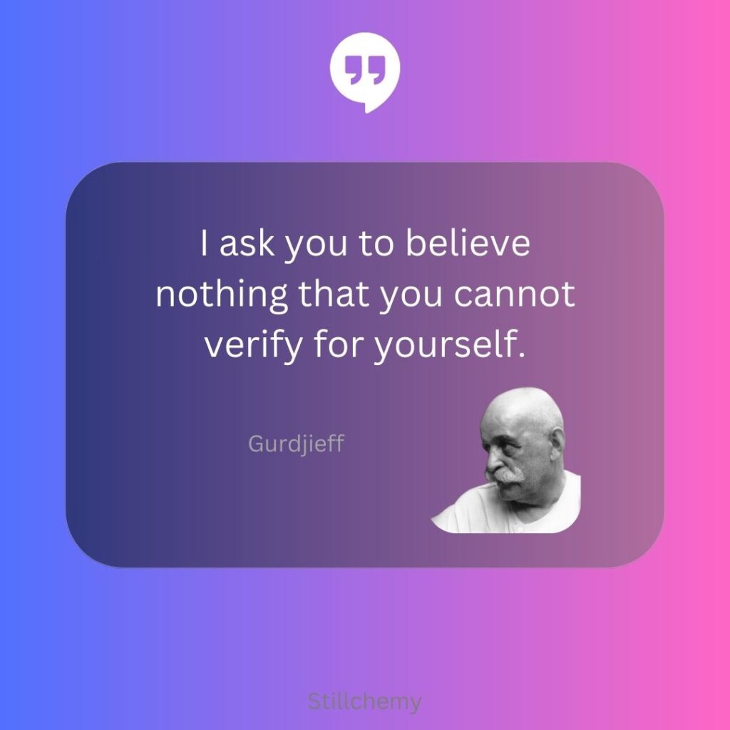I ask you to believe nothing that you cannot verify for yourself. – Gurdjieff